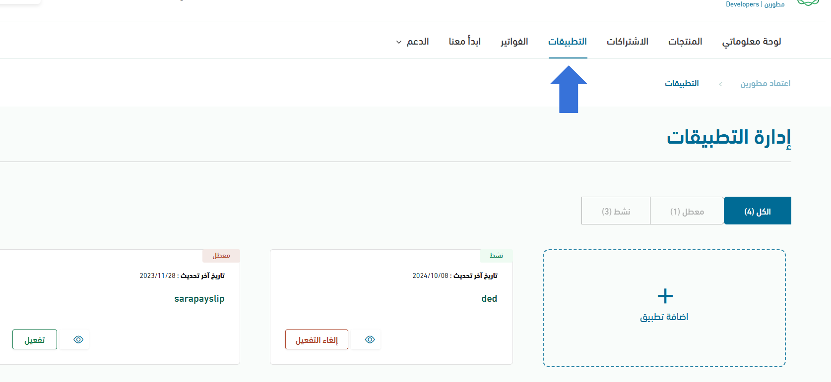 يمثل التطبيق Application البرنامج أو الخدمة التي تبنيها بصفتك مطورًا والتي ستستهلك واجهات APIs من البوابة.