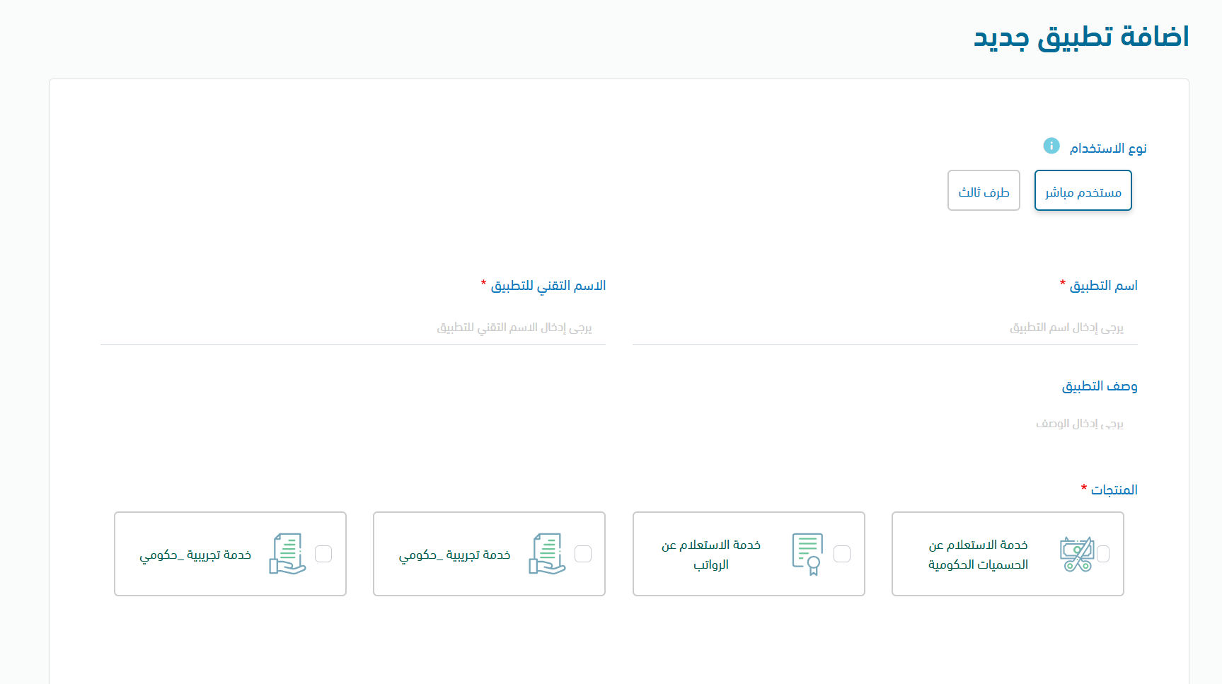 - Select the API products the application will access → اختر منتجات API التي سيصل إليها التطبيق.