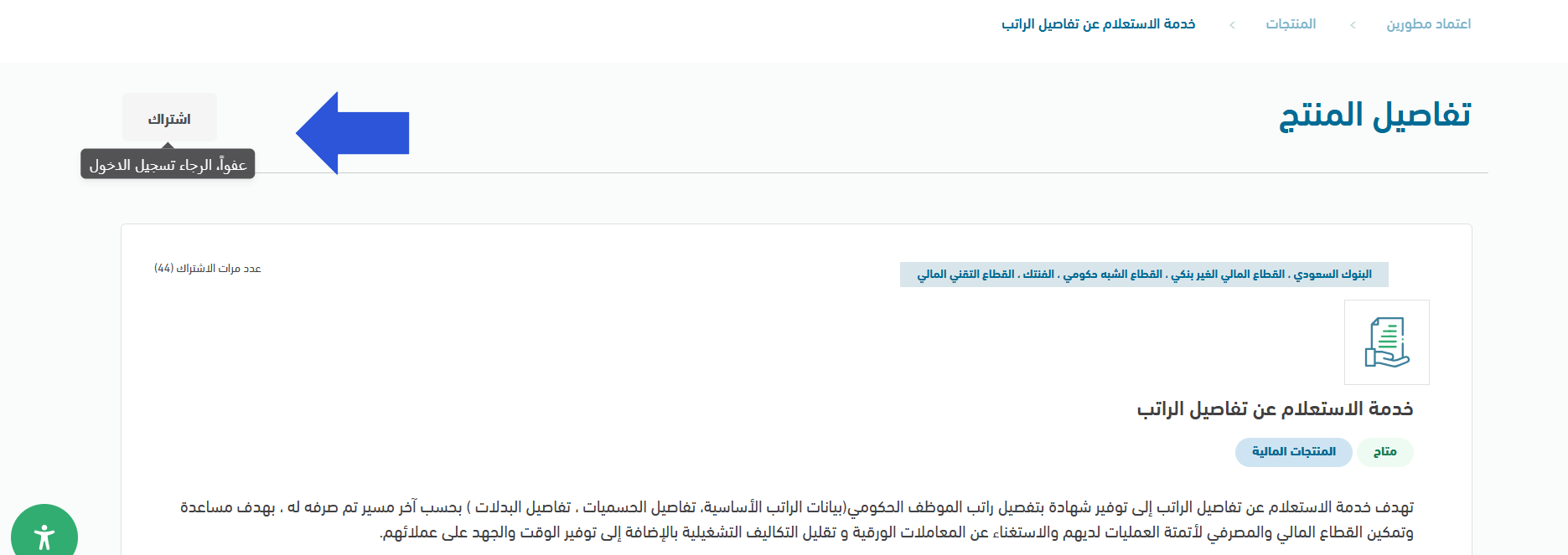 ملاحظة: إذا لم يكن المنتج متعلقًا بقطاعك، فلن تتمكن من الاشتراك فيه.