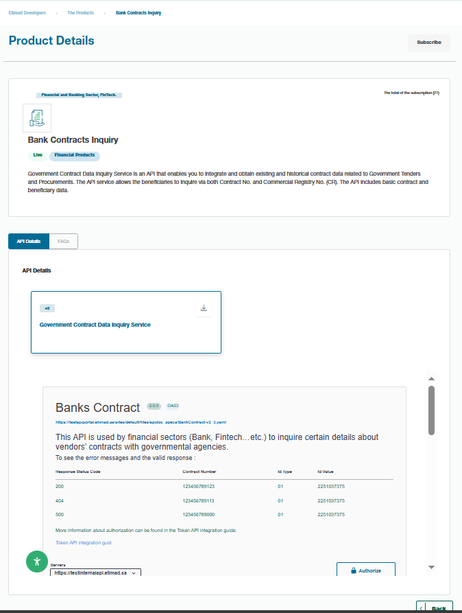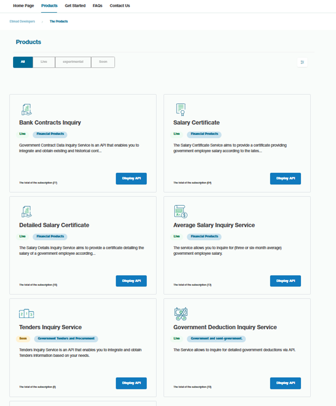 - Browse the available API products. Each product includes a description and swagger documentation.